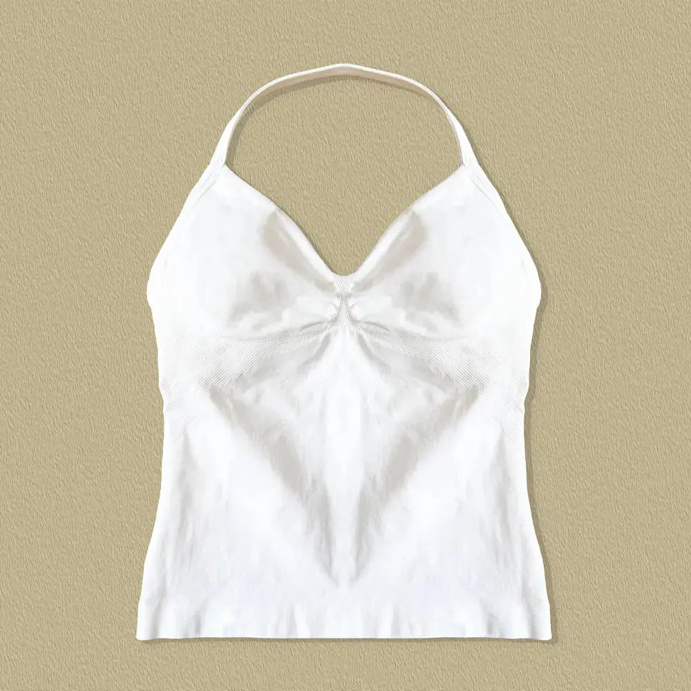 Meet your new sculpt secret. The SculptHalo Seamless Halter Tank delivers that clean, sculpted look with a built-in shelf bra for support—no pads, no fuss, zero show-through. Made for studio days, heavy lifts, and off-duty street looks, it hugs your shape without squeezing and holds everything in place with a flattering open-back halter cut.
